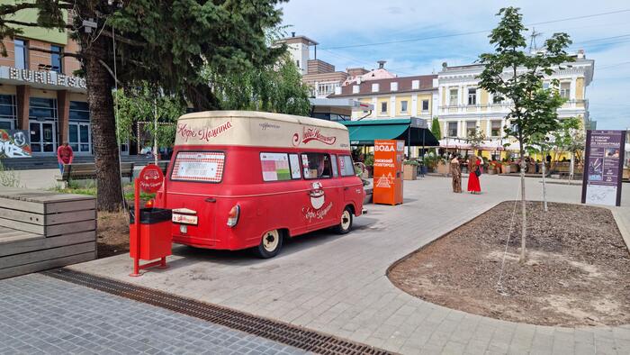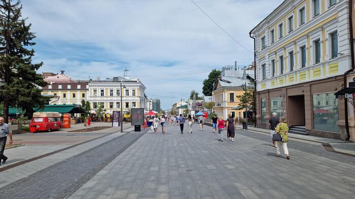 Это была идеальная пауза перед погружением в туристический водоворот. Буквально в двух шагах от тихого сквера начиналась главная улица города — Большая Покровская. Меня сразу же окружили старинные здания, в которых расположились кафе, рестораны, магазины и множество других заведений, привлекающих многочисленных туристов и местных жителей.