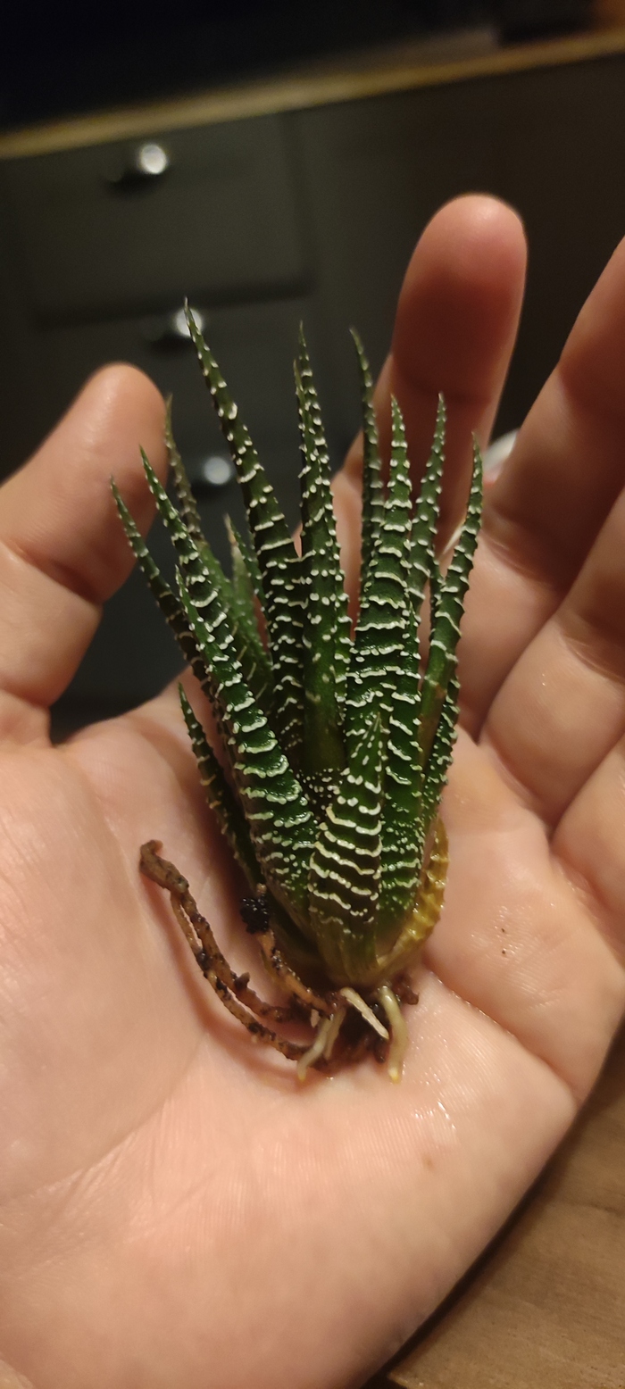 Разворошила, смотрю, да, они, щупальца!) Достаю, а оно маленькое, сухое..с коробок спичечный размером. Чернеет уже или ещë. Потерял либо Ктулху, либо "Алоэ?Арбуэ!" Ну или..Времени выяснять не было (пронеслось в голове - дома 3 кота, сберегу от них)сунула это в карман джинсовки, насухую, докрутила там своë и уехала на работу. Замоталась, вспомнила дня через 2. Достала, промыла, как родного, извинилась даже) В водичку его, любя уже, пару раз в месяц меняла воду. Сегодня достаю, а там прям достойный член общества! Напитался, позеленел, воспрял, и явно намерен укорениться.