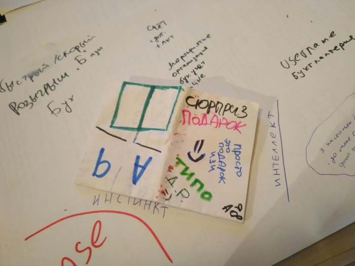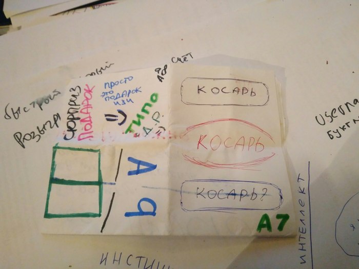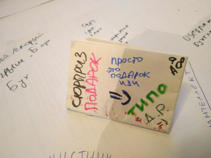 Какое слово под бумажкой? Спойлер. Подарок. Это тогда тебе сейчас, но это как-бы на Новый Год.
