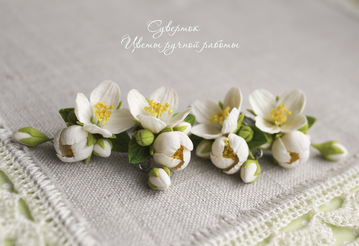Чубушник, он же псевдо - жасмин) Ручная работа из полимерной глины⁠⁠