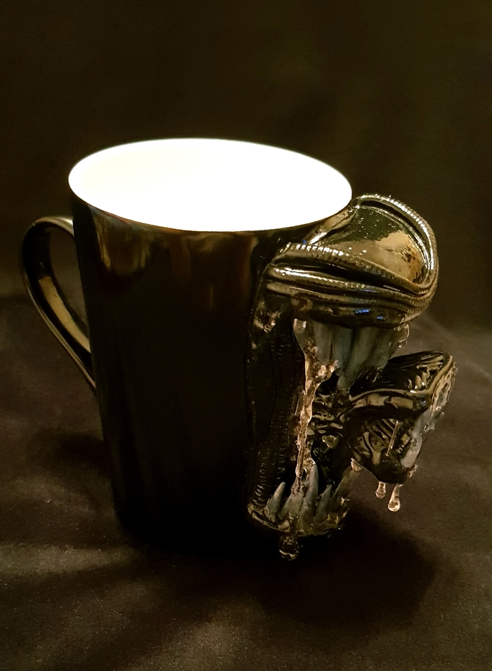 Кружки по 480 мл.с декором из полимерной глины "Чужой"