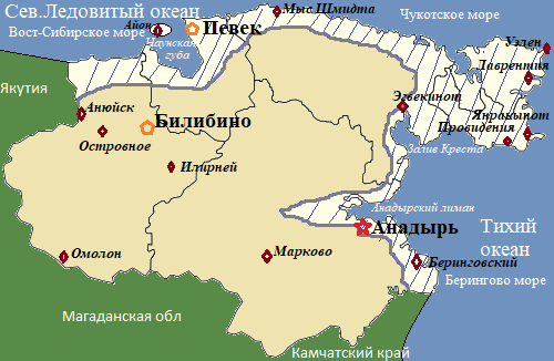 Это там где олени, чукчи, немного эскимосов, полярная, мать её, ночь, а ещё много льда, снега и холодный океан под боком, даже два. Ну, и до Америки подать рукой. В общем, что вы знаете про этот северо-восточный край России?