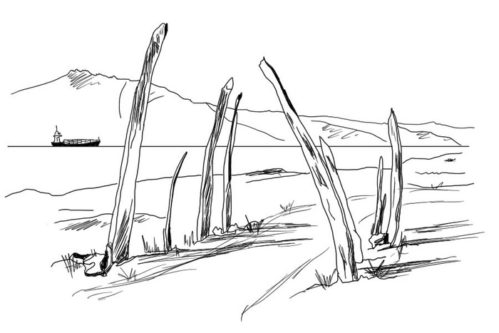 На всех мысах окрестного побережья стоят столбы из костей китовых челюстей — вехи морских дорог. С того места в море, где сходятся створы этих вех, видны белые скалы. И посвященный знает — надо отсюда править на них...