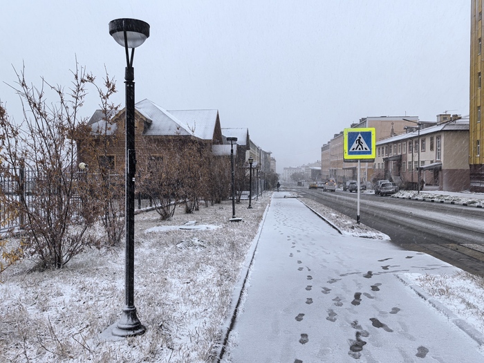 Зима в Арктике. В Анадыре на Чукотке выпал снег