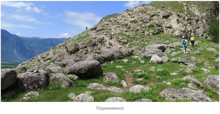 На склон поднимаемся по натоптанной тропке. Подъем легкий, справится даже бабуля:)