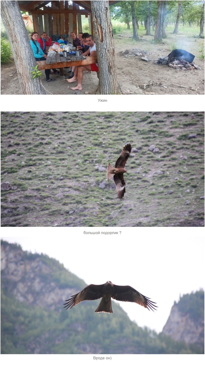 Развели костёр, приготовили вкусный ужин. За ужином наблюдали за тем как охотится большой подорлик (может это и другой вид, но слишком уж они похожи)