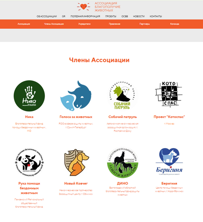 Примечательно следующее. Все мало-мальски заметные фонды, состоят в “Ассоциации благополучия животных”, вот их сайт https://blagozoo.ru/. А вот страница с “членами” https://project932777.tilda.ws/association: