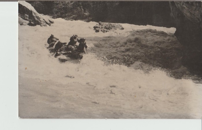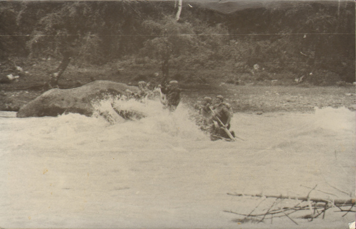 Порог Бегемот. Первый по настоящему серьёзный порог с начала сплава. Ленинградцы прошли красиво, технично, мастера настоящие, чего там. И сразу ушли дальше, у них свой спортивный график. А вся наша компания остановилась на просмотр.. Лоции были у нас и у омичей, с небольшими различиями, но в общем то совпадали. Первыми пошли омичи. Четвёрка - оверкиль, то есть перевернулась, а огромная, как авианосец шестёрка - удары о камни, погнутый каркас (а они ж на поезде добирались, близко им там, привезли каркас из алюминиевых труб) и потерянные девушками весла. Причём терять весла, именно у женской части экипажа омичей, стало тенденций. Практически на каждом серьёзном пороге одно-два весла терялись..... Сначала их руководитель Миша выпрашивал запасные лопасти у соседей по сплаву, но потом его это достало, да и запасы не бездонные. У нас на четверых было восемь лопастей, ибо изначально то планировалось, что нас будет много... Из четырёх запасных мы отдали им три, оставив на всякий случай одну.... В общем, Мишу это задолбало, а так как девушки были не сами по себе, а с кавалерами, он им дал команду "Чуйский тракт рядом. Взяли топор и молоток, и вперёд, знаки рубить!".... Так и гребли, кто знаком "Уступи дорогу", кто ограничением скорости.. Обрубали под весло, конечно, но смотрелось все равно очень необычно. Да и грохоту было при их обработке, в СССР железа на такие вещи не жалели...