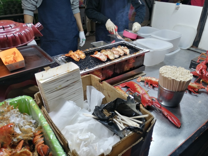 По верху ручья, вдоль русла поздним вечером образовалась стритфуд, со стейками, шашлыками, омарами и традиционными блюдами.