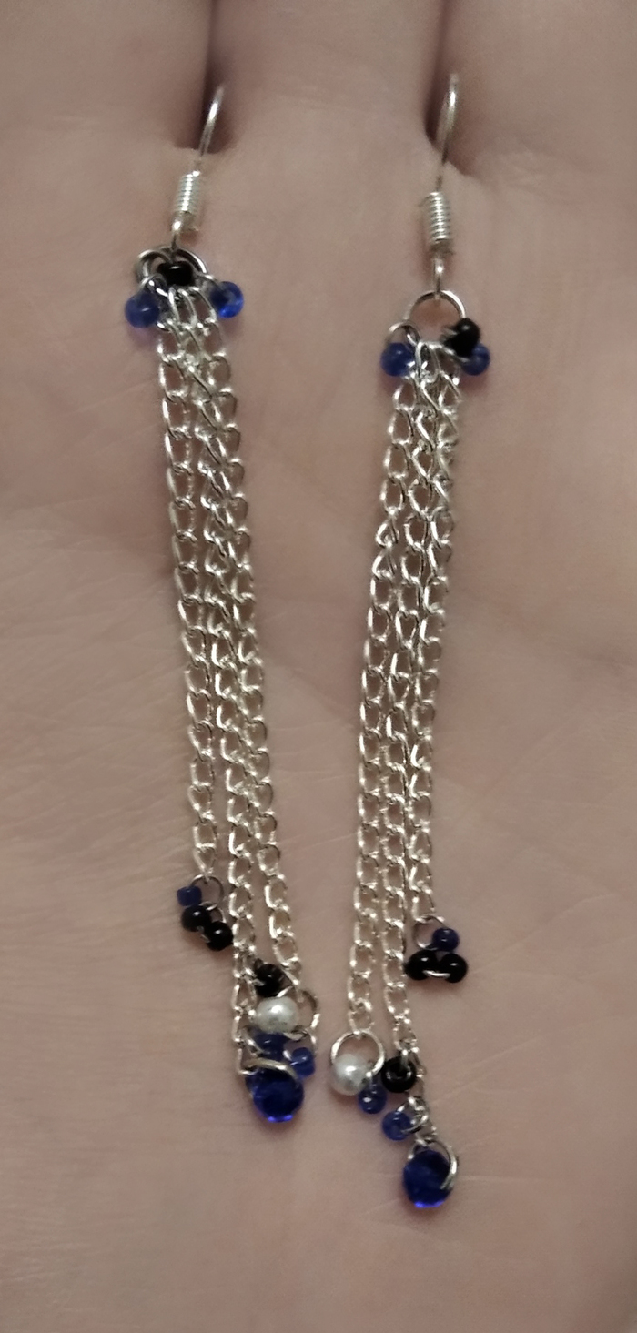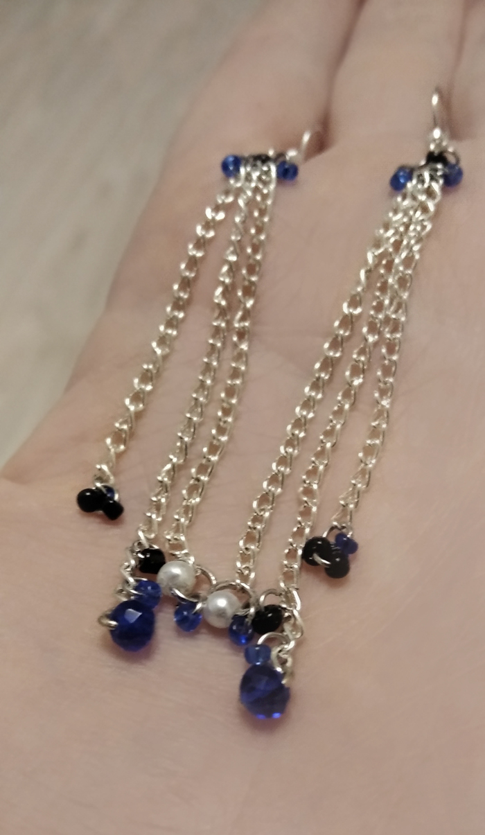 Серьги сделаны из металлических цепочек, колечек, бусин и застежек в форме крючков! По времени ушел целый вечер =) Лично меня результат устроил, всегда любила такую форму.