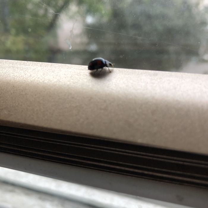 Не знаю редкость это или нет. Но первый раз вижу такую божью коровку. Она чёрная в красную точку.