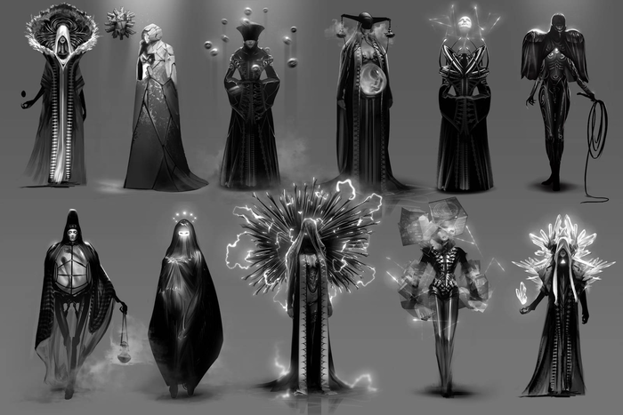 Концепты Гильд-навигаторов и их посредников Гильдии, а также Барона Харконнена с пленником и на средствах "перемещения"