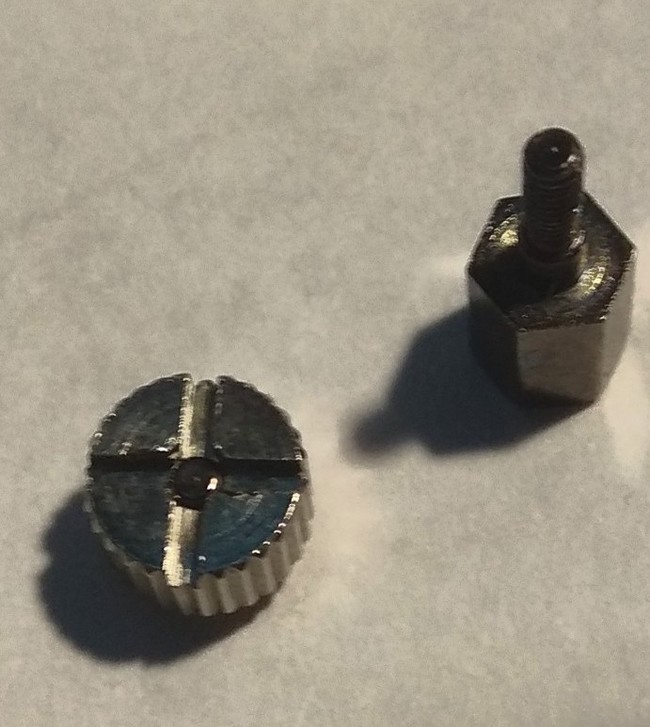 Закручивал вроде не сильно, но болт лопнул. На фото - такие же целые (болт и гайка?) В инструкции было написано их название - Bracket Standoff и T-nut, понятно что по такому наименованию ничего не найдешь, но я уже перерыл много страниц АлиЭкспресс, так ничего и не нашел. Их диаметр чуть больше миллиметра, подойдут и на 2мм