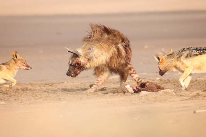 Зверь этот, ни кто иной как шакал. А интересен он тем, что в донских степях они появились относительно недавно. Может лет двадцать как, насколько мне известно. И активно продвигаются с лесов Кавказа на север, через степи. Попутно меняя баланс сил в экосистеме. Но, это отдельная тема для разговора.