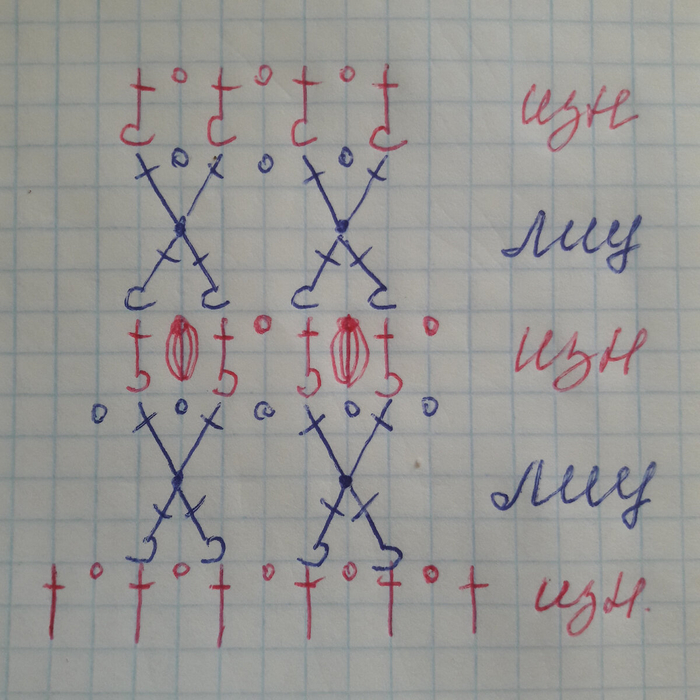 В данном узоре попкорн вяжется в изнаночном ряду. Как обычно, только соединяем в обратную сторону