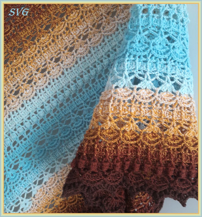 Шаль связана из пряжи JEANS TROPICAL YARN ART цвет 610, 55 % хлопок 45% акрил, 160 м / 50 г крючком № 3,25