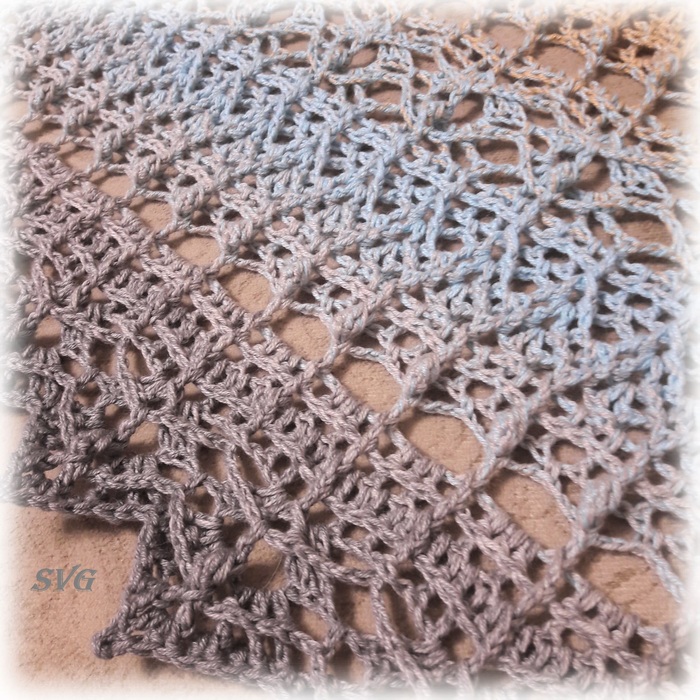 Шаль связана крючком № 3 из двух целых мотков (в остатке 4 метра) Rosegarden Yarnart 100 % хлопок градиент 1000/250 цвет № 301