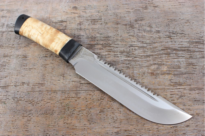 Дело в том, что дол на охотничьем ноже, да и вообще на любом ноже штука совершенно бесполезная и даже вредная. Вредная для пользователя. В эту канавку набивается грязь, ее надо чистить или протирать, если после работы (особенно грязной) ножом надо порезать колбасу. А пила на обухе так вообще сборник грязи и рассадник для микробов.