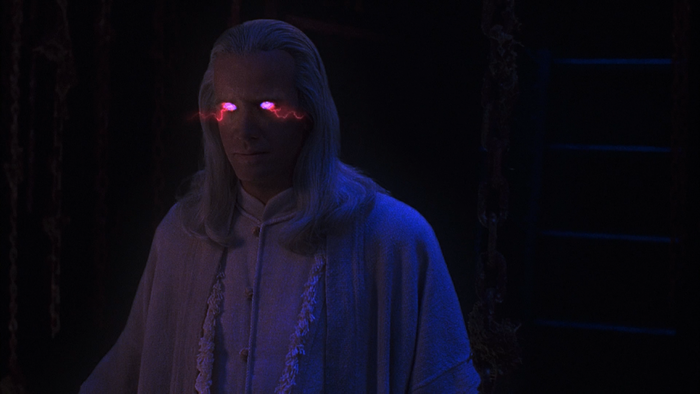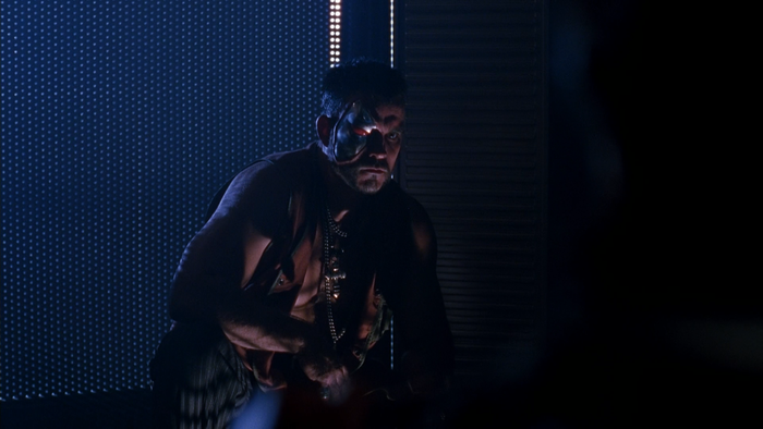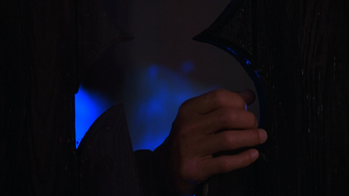 Всё-таки оператор — капитальный красавчик. Так шикарно уронить свет на злодея, превращая его лицо в самую настоящую маску!