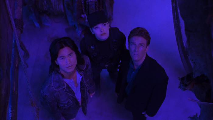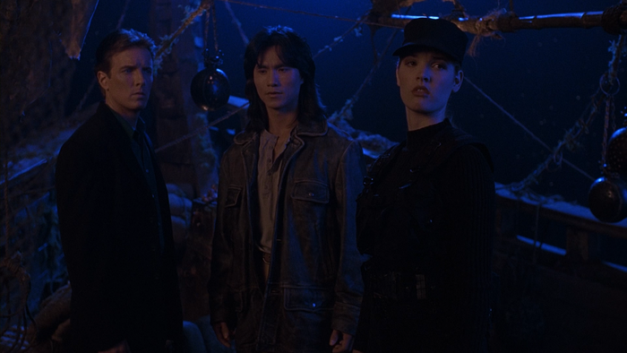На аккуратные подкатывания Соня не реагирует: отпихнув Кейджа, она отправляется обшаривать корабль. Следом за ней, по неизвестной нам причине, увязывается и Лю Кэнг. Дедка — за репку, бабка — за дедку... Ну, в общем, понятно, что вот таким пионеротрядом вся троица оказывается в трюме, где прелестную мисс Блэйд приветствует Шен Цунг: