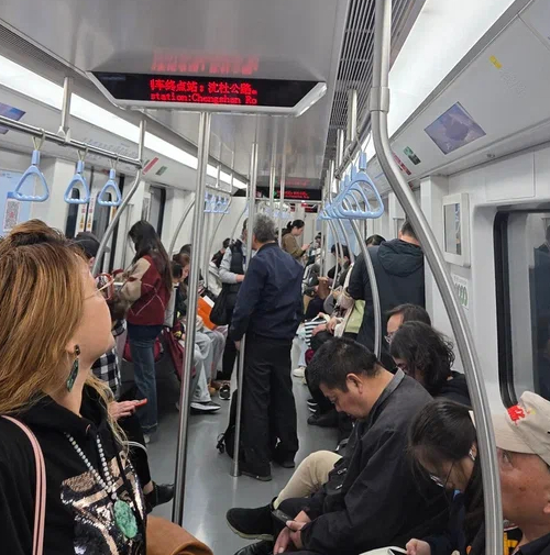 Вагоны метро сквозные, станции написаны на китайском и английском
