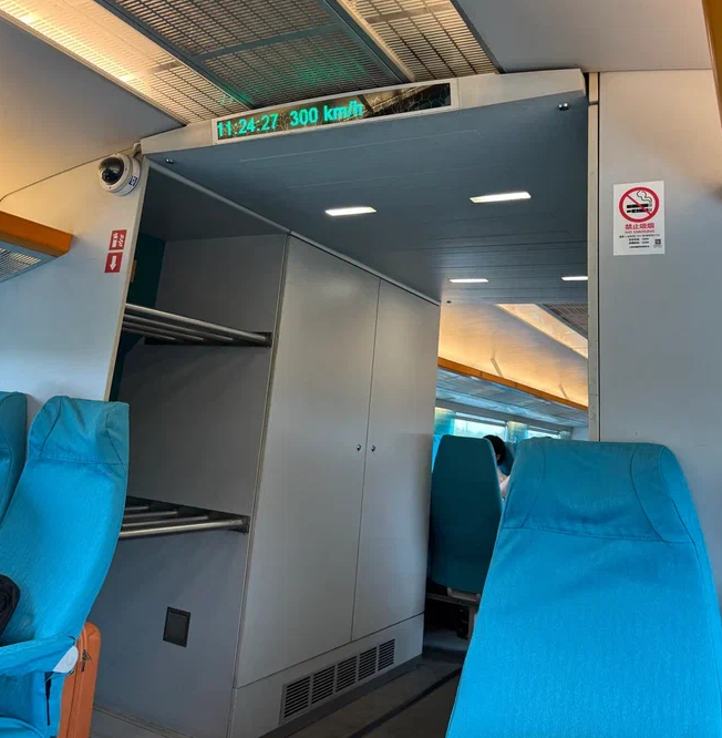 Поезд на магнитной подушке, который развивает огромную скорость до 450 км/час. Но поезд с этой скорость едет не каждую свою поездку, а только в определенные часы. Мы с мамой на неё не попали, поэтому застали всего 300: