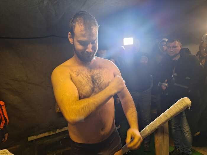 Студентов не надо было упрашивать. Они смело сиганули в прорубь!