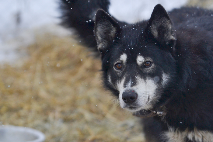 Мужчине приходилось часто останавливаться, ставить коробку на снег и показывать щенка Лисе. Тогда Лиса шла за коробкой, а Юта за Лисой. В общем, завели мы их без проблем. Ну, поупирались немножечко, это не считается.