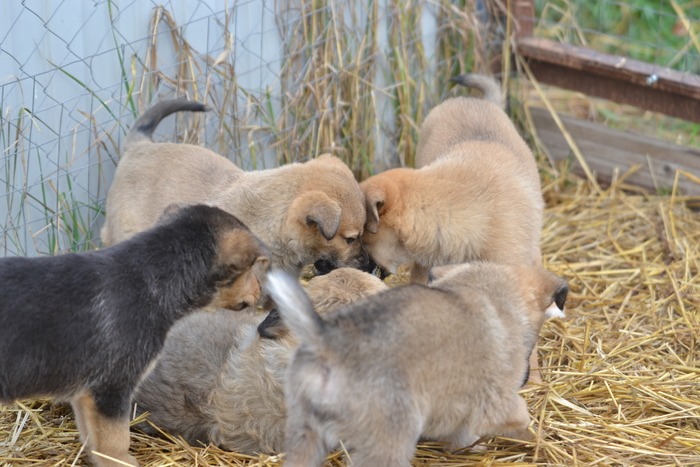 Щенков я посадила в будку и мы ушли. Люди поехали домой, а мне надо было срочно бежать гулять с собаками. Мы и так сильно задержались. Поэтому дальнейшее устройство семейства я отложила на потом.