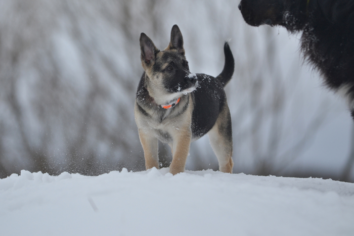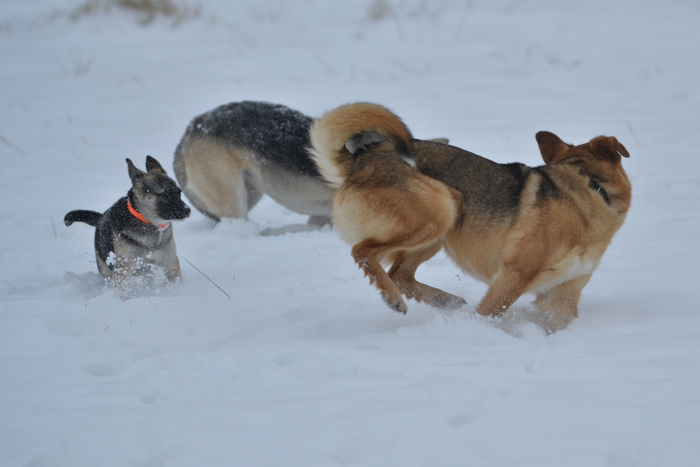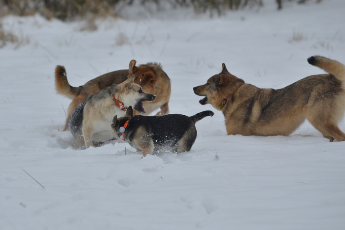 Так. Главное, что она не обижает щенков, значит, можно всех в один вольер. Я очень не хотела поселять семейку в конюшне. Там тесно, вольер всего три на три метра. Темно, освещается только лампочкой. Но обещают очень сильный мороз. Поэтому выхода нет.