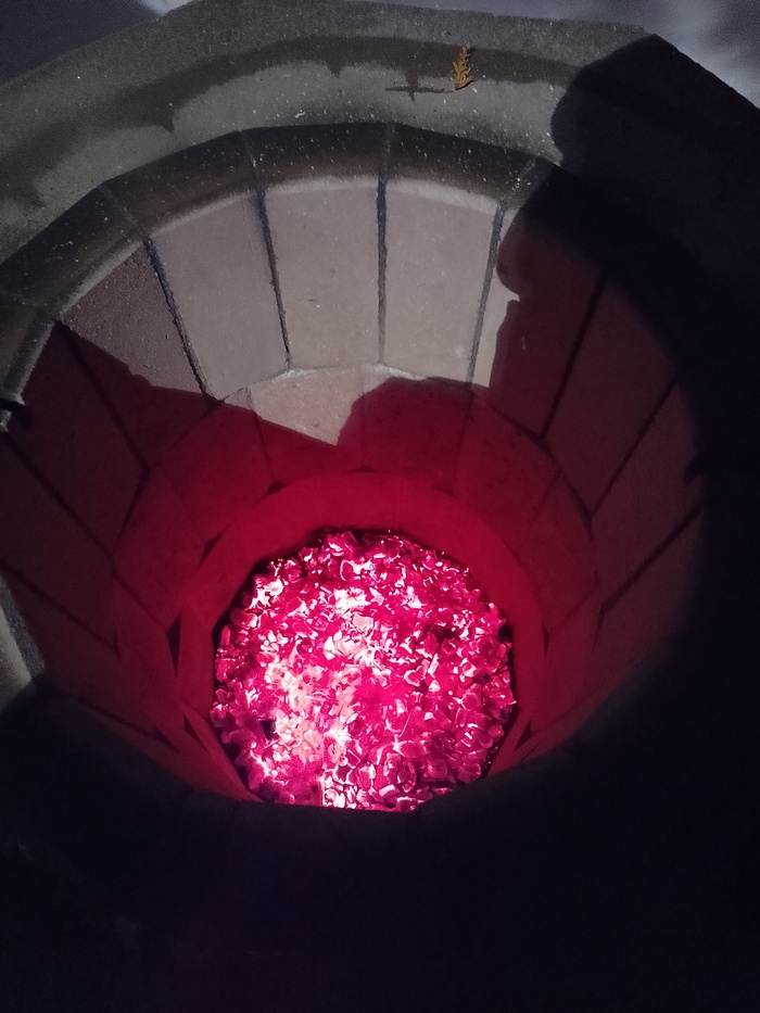 Когда стенки очистятся от сажи и дрова прогорят до углей, тандыр готов работе:
