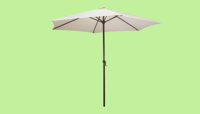 Чтобы отдыхать у мангала не только прохладным вечером, обязательно установите над обеденной зоной садовый зонт. Большой купол защитит и от палящего солнца, и от летнего дождя.