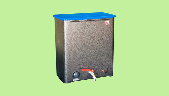 Компактный умывальник — незаменимая вещь в зоне барбекю. И овощи с мясом подготовить, и руки помыть. А чтобы отмыть жирную посуду, воду можно даже подогреть! С помощью термостата установите нужную температуру, а двойной корпус-термос сохранит тепло надолго.