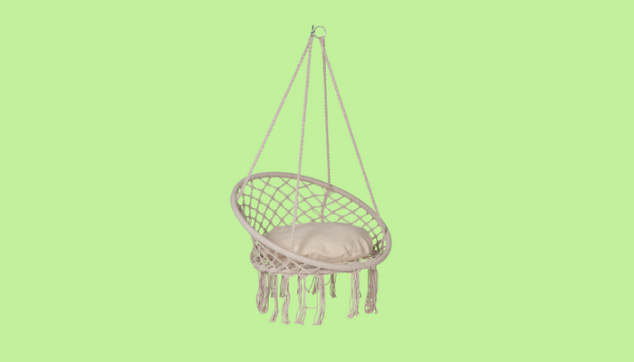 Чтобы не волноваться о любимом чаде, пока вы заняты готовкой, повесьте в зоне барбекю плетеные качели. Ребенку удовольствие, а вам минус одна головная боль. В комплекте мягкая подушка, максимальная нагрузка — 100 кг.