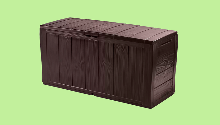 Чтобы прятать пледы, посуду или шашлычный инвентарь, пригодится уличный сундук. Благодаря изящной форме и стилизации под дерево вещь не только полезная, но и красивая. Весит всего 6,5 кг, вмещает 270 литров.