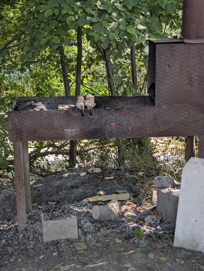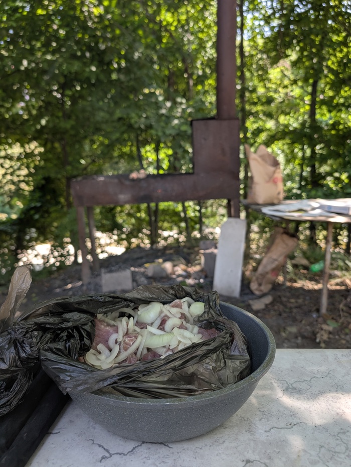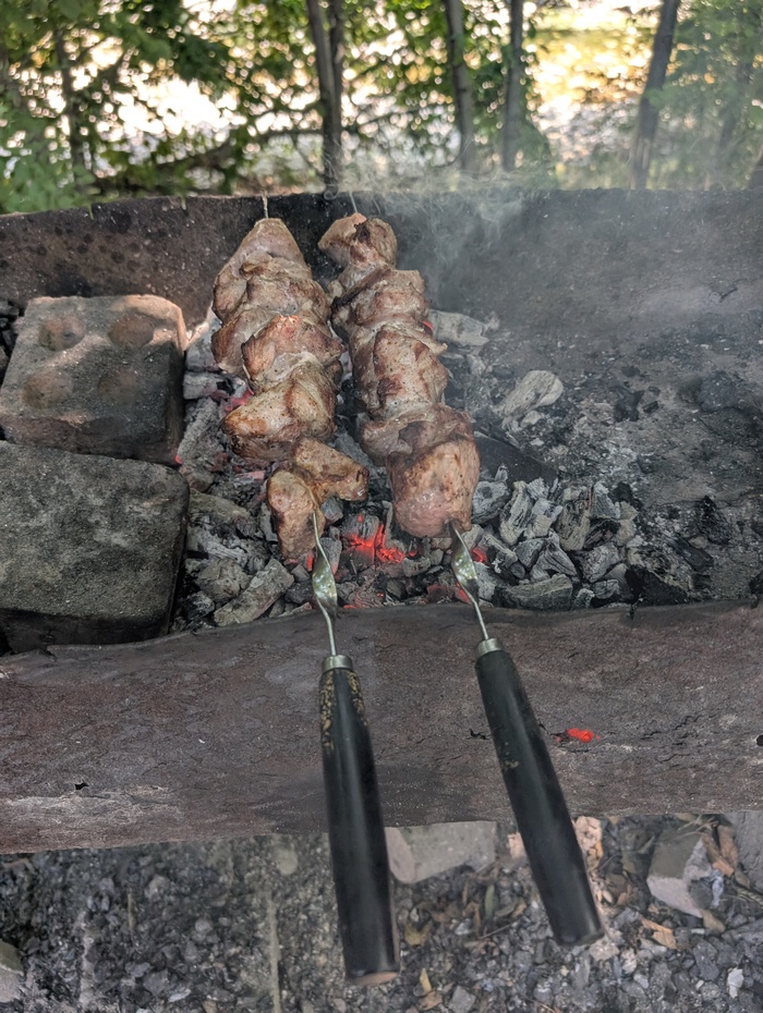 Это мы с любимой жарим шашлыки на 9 маю. Я жарю из баранины. А вы завидуйте нам...