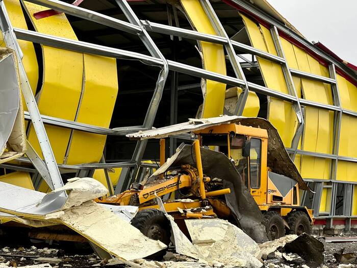 Здание торгового центра в Шебекино полностью сгорело после пожара, возникшего в результате обстрела.