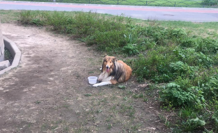 Дотащить шелти до дома мужчине не удалось и он оставил собаку во дворе.