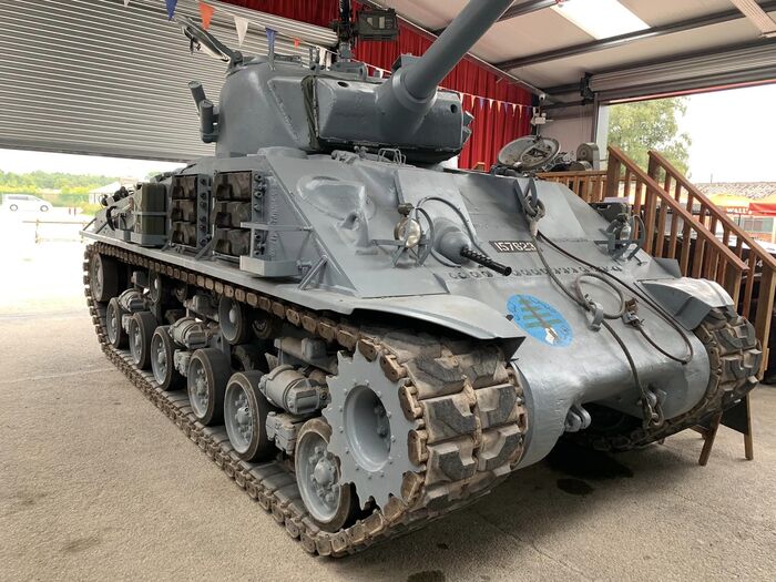 Найти информацию в интернете о том, где воевал и где погиб данный танк не удалось. Только было описание, что это уникальный экземпляр не самой распространенной версии Шермана с двигательной установкой из шести! обычных двигателей Крайслер. Из-за этого у него корпус длиннее обычного.