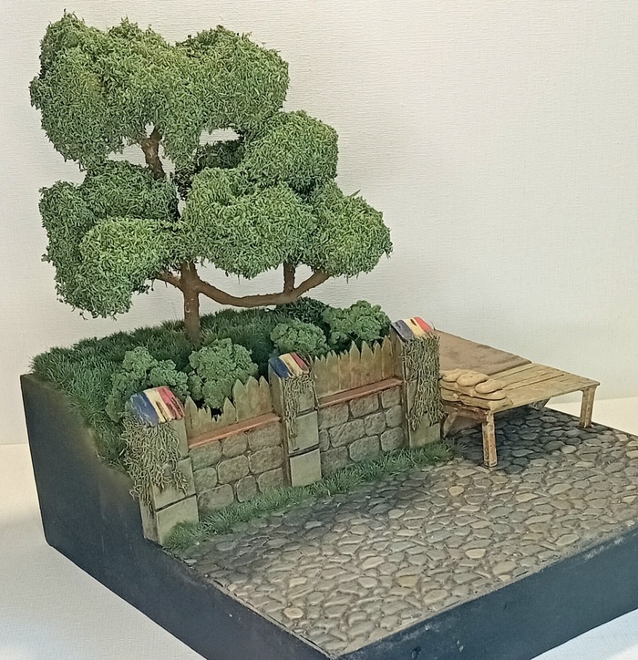 В итоге заказал tamiya'вские наборы с грузовиком и немецкой пехотой на поздний этап войны, а пока наборы идут ко мне, я взялся за дополнительные элементы диорамы: