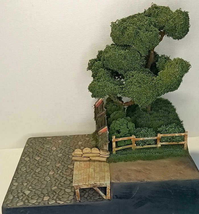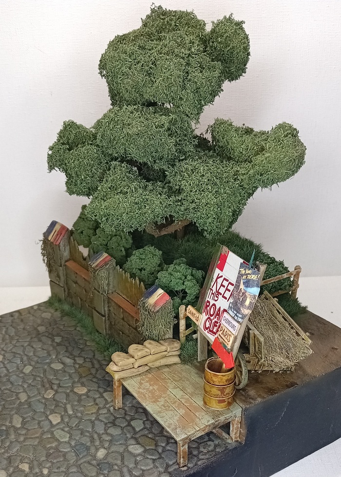 Я продолжаю работу над своей диорамой "Опасная дорога во Франции". В прошлый раз был материал про деревья и дуб в частности, сегодня расскажу о новых фоновых элементах, но сначала о важном.