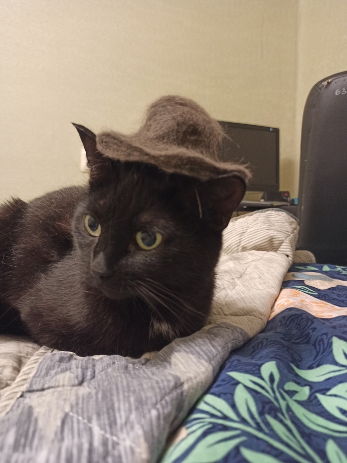 98 999wmz Котомафия Шляпка 5 лет назад Подобных постов уже было много, добавлю и от себя. Вычесали кота, и из шерсти изготовили шляпку. Показать полностью 2 [моё] Кот Шерсть Шляпа Ещё 0