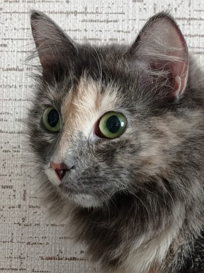 Мы зовём её Тиффани, ей около года, она ласковая девочка, которая любит сворачиваться в клубок рядом с человеком и тихонько урчать.