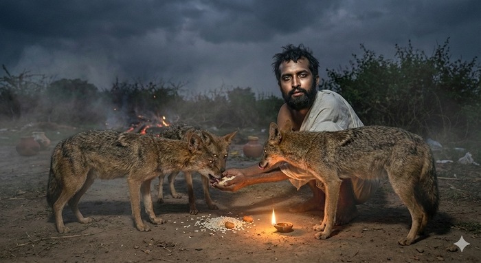 Еще одна специфическая практика бенгальских тантриков — почитание шакалов, которых называют Шива-дути (Посланницы Шивы). Рамакришна кормил их, и это было не просто милосердие к животным. В Тантре вой шакала считается голосом самой Кали. Существует тайная мантра приветствия шакалов, которую произносят, услышав их вой на шмашане, чтобы получить благословение: