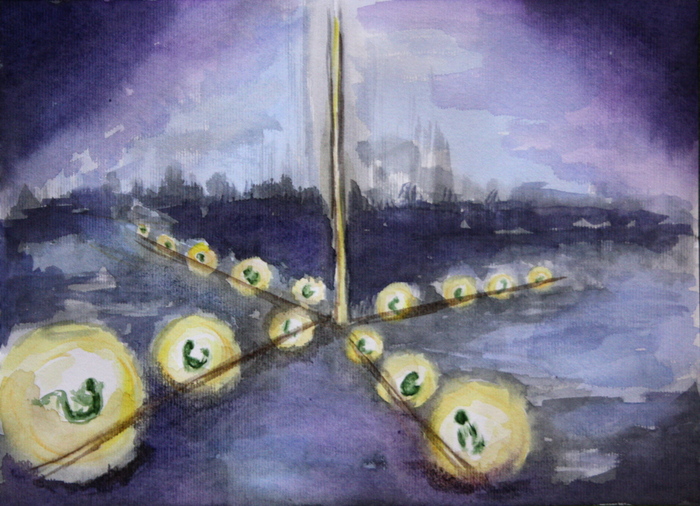 Шариков было много, очень много. И в каждом – человек. Шары подсоединены к каналам, а грозди – к общему центру. В центре - труба или штырь.