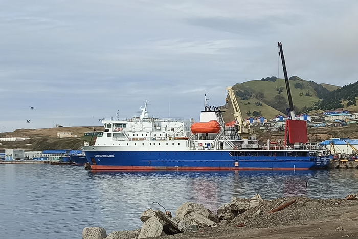 Теплоход "Адмирал Невельской" в порту Малокурильского