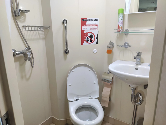 Во всех каютах есть санузел - туалет, раковина, душ.