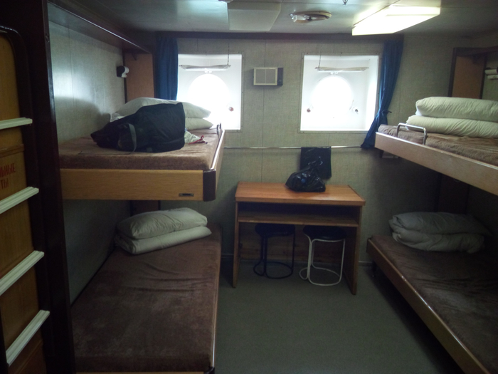 Первое, что бросается в глаза - мало места. Если на "Фархутдинове" в каютах было очень просторно, то тут вчетвером тесновато.