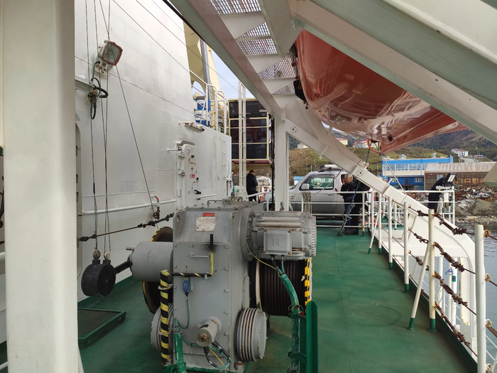 У нас была возможность пройти на нем в октябре из Малокурильского (о. Шикотан) до порта Корсаков на Сахалине.
