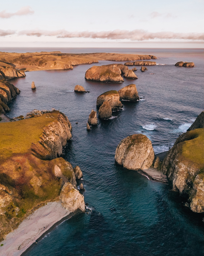 Рассветы и закаты здесь реально золотые, а ночевать в палатке на берегу океана можно спокойно. На острове нет опасных для человека животных - медведи и змеи здесь отсутствуют, а самый крупный хищник - лиса.